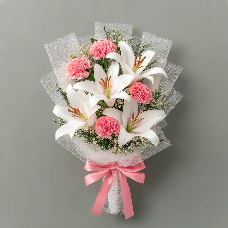 Gentle Poetry — White Lily & Pink Carnation